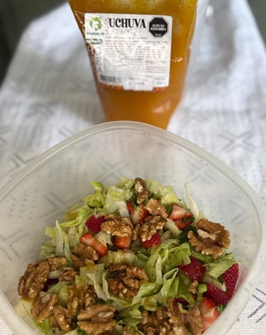 Para elevar esta ensalada a otro nivel, incorpora la salsa de uchuva de la línea HORECA, que aporta un equilibrio delicioso entre lo dulce y lo ácido, convirtiendo una preparación sencilla en una opción fresca y llena de sabor.